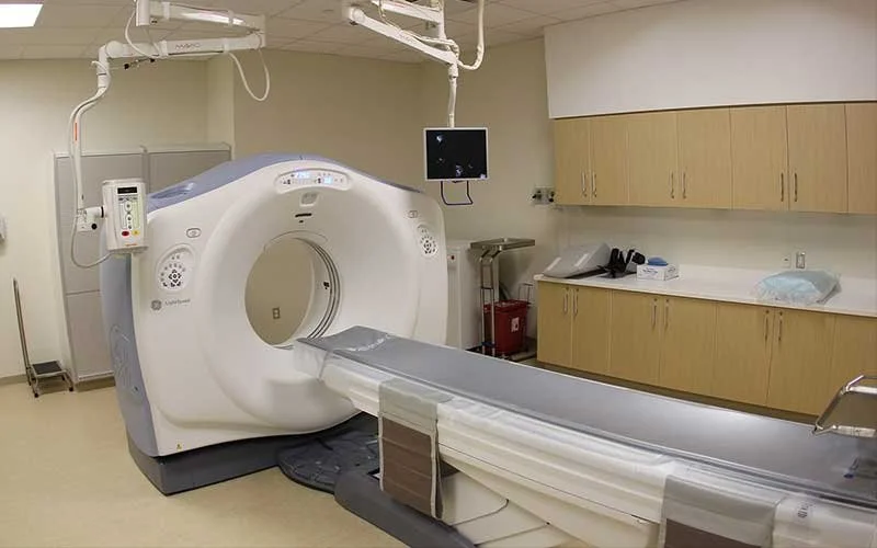•The CT scanner is shaped like a donut and open on both sides. There is no loud noises or uncomfortable positioning.